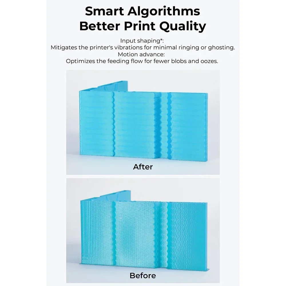 Input shaping*: Mitigates the printer’s vibrations for minimal ringing or ghosting