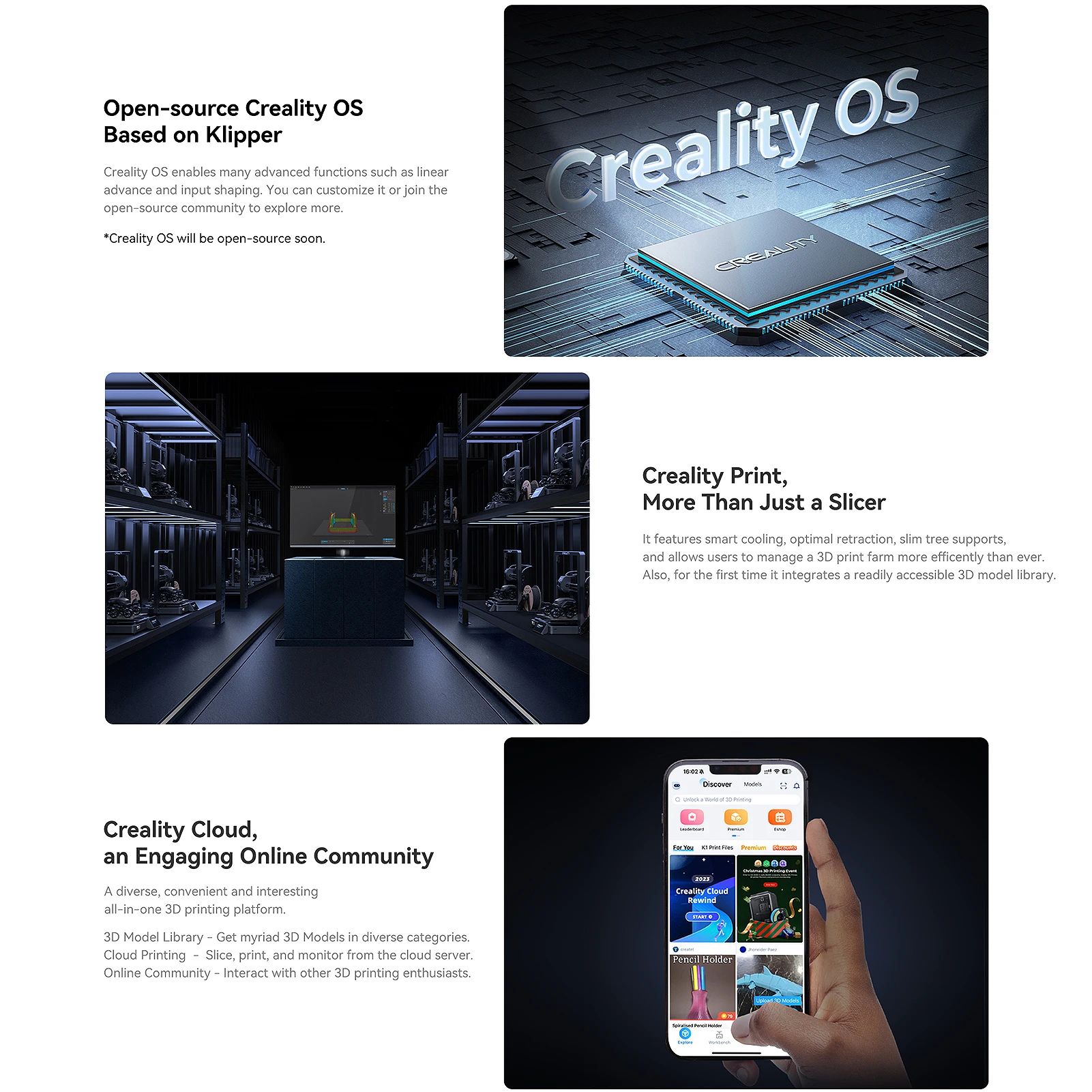 【Keep 3D Printing Easy and Enjoyable】 Creality Print includes rich presets for quick model slicing. Besides a wealth of free models, Creality Cloud supports cloud printing and remote monitoring, helping you keep an eye on printing wherever you are.