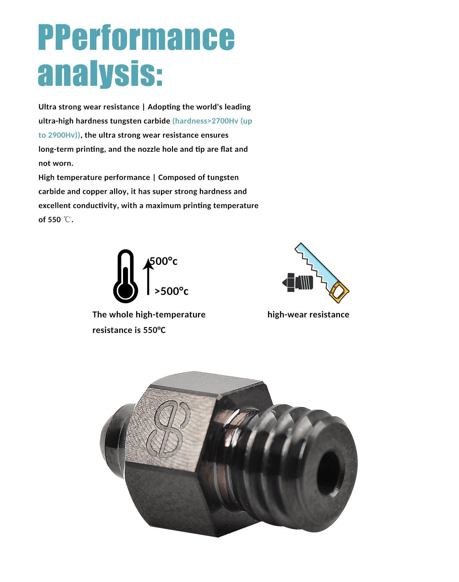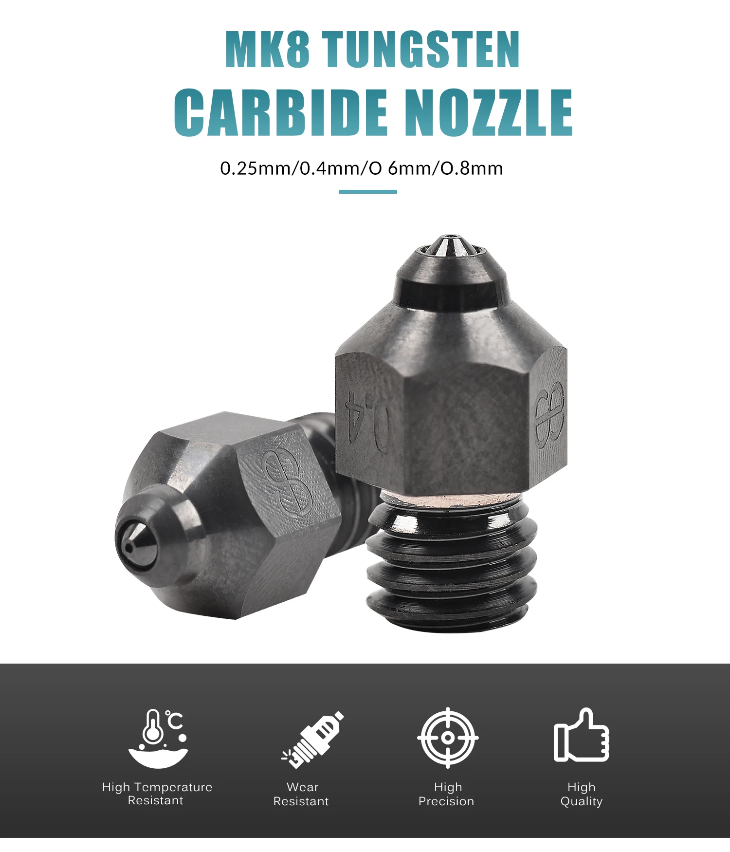 - Model Number: Phaetus MK8 Tungsten Carbide Nozzle