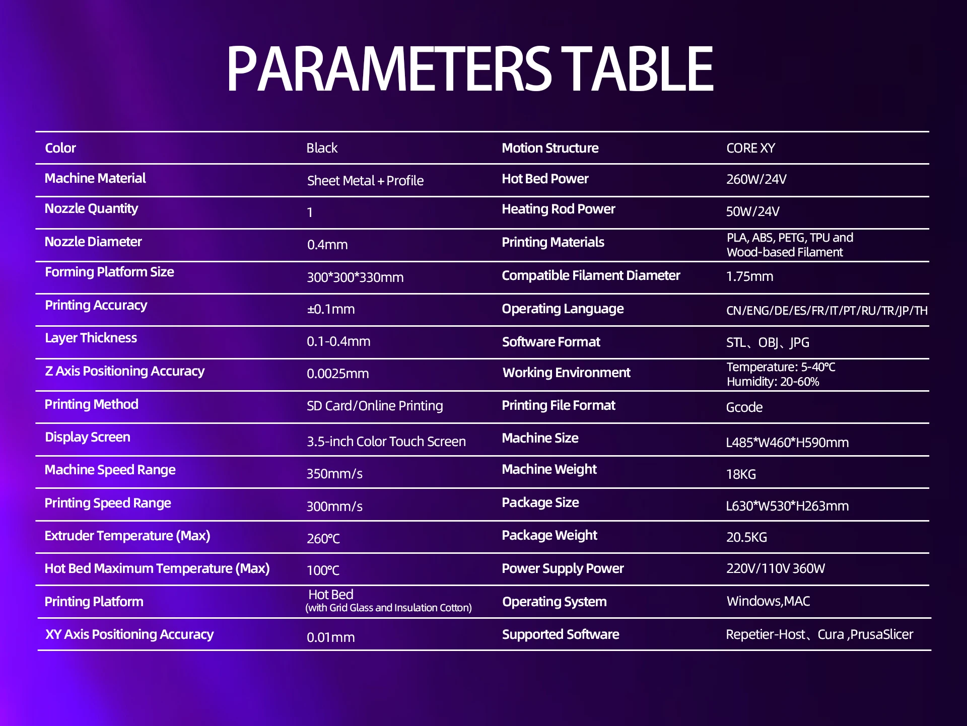 - Nozzle Diameter: 0.4mm